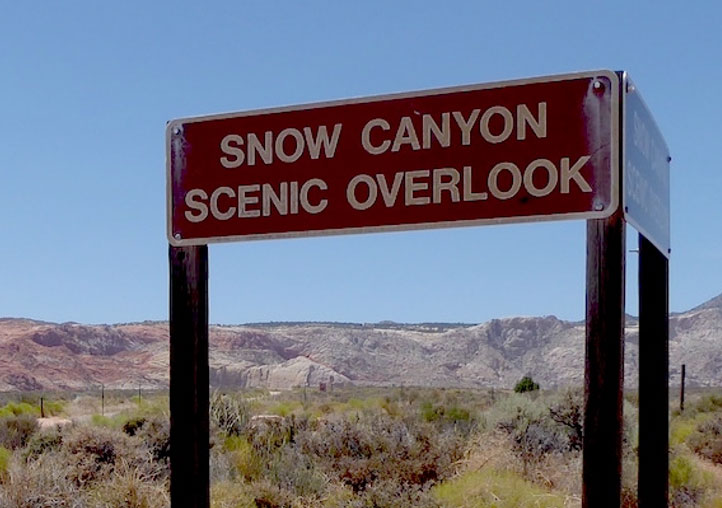 A short drive of about 1/8 mile off SR-18 provides an overlook of Snow Canyon viewed from the East, prior to entering the Park.