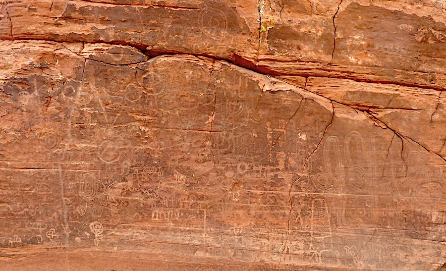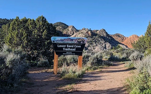 Widened SR-18 highway parking leading to trails into the Eastern part of Snow Canyon for petroglyph viewing. Hike in from SR-18.